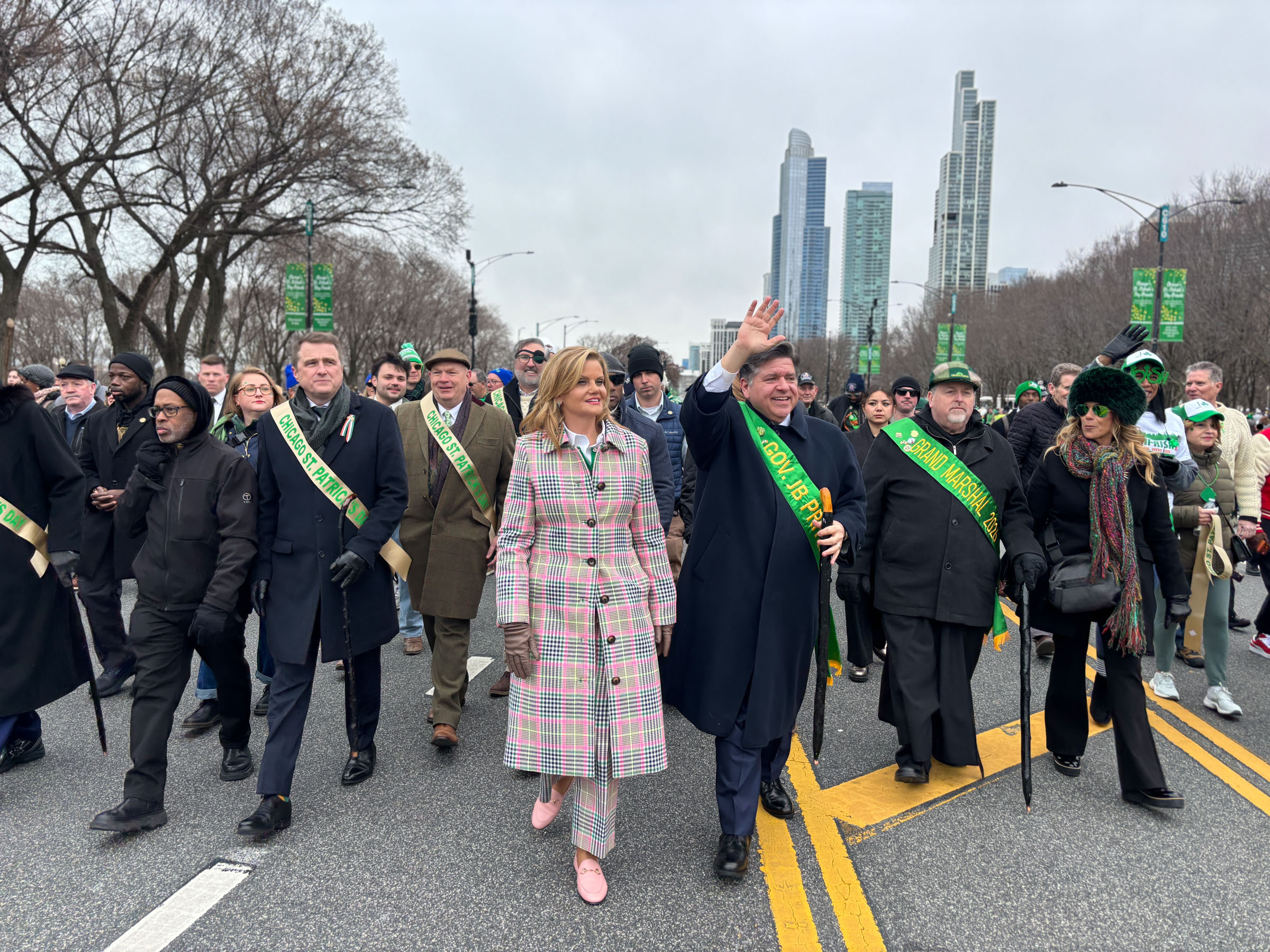 As she prepared to march in the St. Patrick’s Day parade, MK Pritzker, the governor’s wife, considered what she thought of her husband’s running for a third term. Her shoulders sank. “‘Oh jeez.’ That was my response,” she says. “If the national landscape was a little bit different, maybe he wouldn’t have run, but he’s in a strong position to continue the fight.”